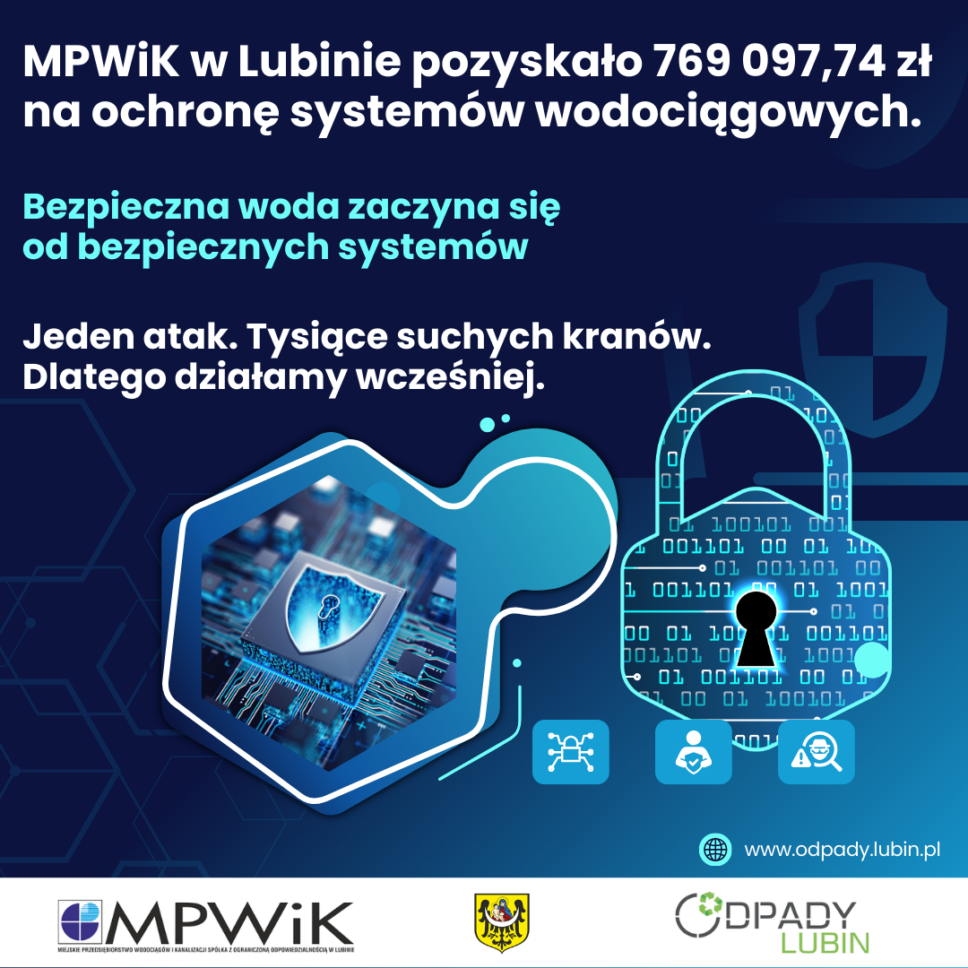 - Najlepsza sytuacja to taka, w której mieszkańcy w ogóle nie myślą o wodociągach - bo wszystko po prostu działa. Żeby tak było, musimy chronić nie tylko sieci i urządzenia, ale też systemy informatyczne, które nimi sterują.- podkreśla Tymoteusz Myrda, Prezes MPWiK w Lubinie i dodaje - Realizacja projektu „Cyberbezpieczne Wodociągi” to efekt konsekwentnego wdrażania kierunków wyznaczonych przez Prezydenta Lubina, Roberta Raczyńskiego. Prezydent od dawna wskazywał, że bezpieczeństwo infrastruktury krytycznej musi być jednym z filarów funkcjonowania miasta. Dostosowaliśmy nasze działania do tych zaleceń i dzięki temu mogliśmy skutecznie przygotować wniosek oraz zdobyć dofinansowanie, wzmacniając ochronę systemów wodociągowych dla mieszkańców. Dzięki pozyskanym środkom znacząco podnosimy poziom zabezpieczeń i możemy szybciej reagować na ewentualne zagrożenia. To inwestycja w codzienny komfort i pewność, że woda w kranie będzie zawsze wtedy, kiedy jest potrzebna. Dlatego dbamy nie tylko o infrastrukturę pod ziemią, ale też o „cyfrowe serce” systemu.