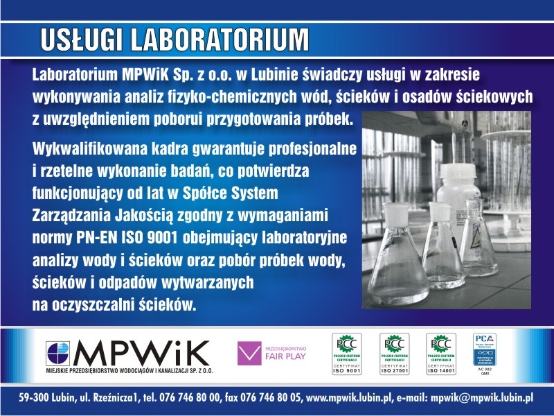 Miejskie Przedsiębiorstwo Wodociągów i Kanalizacji Spółka z ograniczoną odpowiedzialnością w Lubinie informuje,...